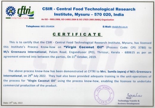 Centre for Food Technological Institute transfers latest technology to Greenaura International.